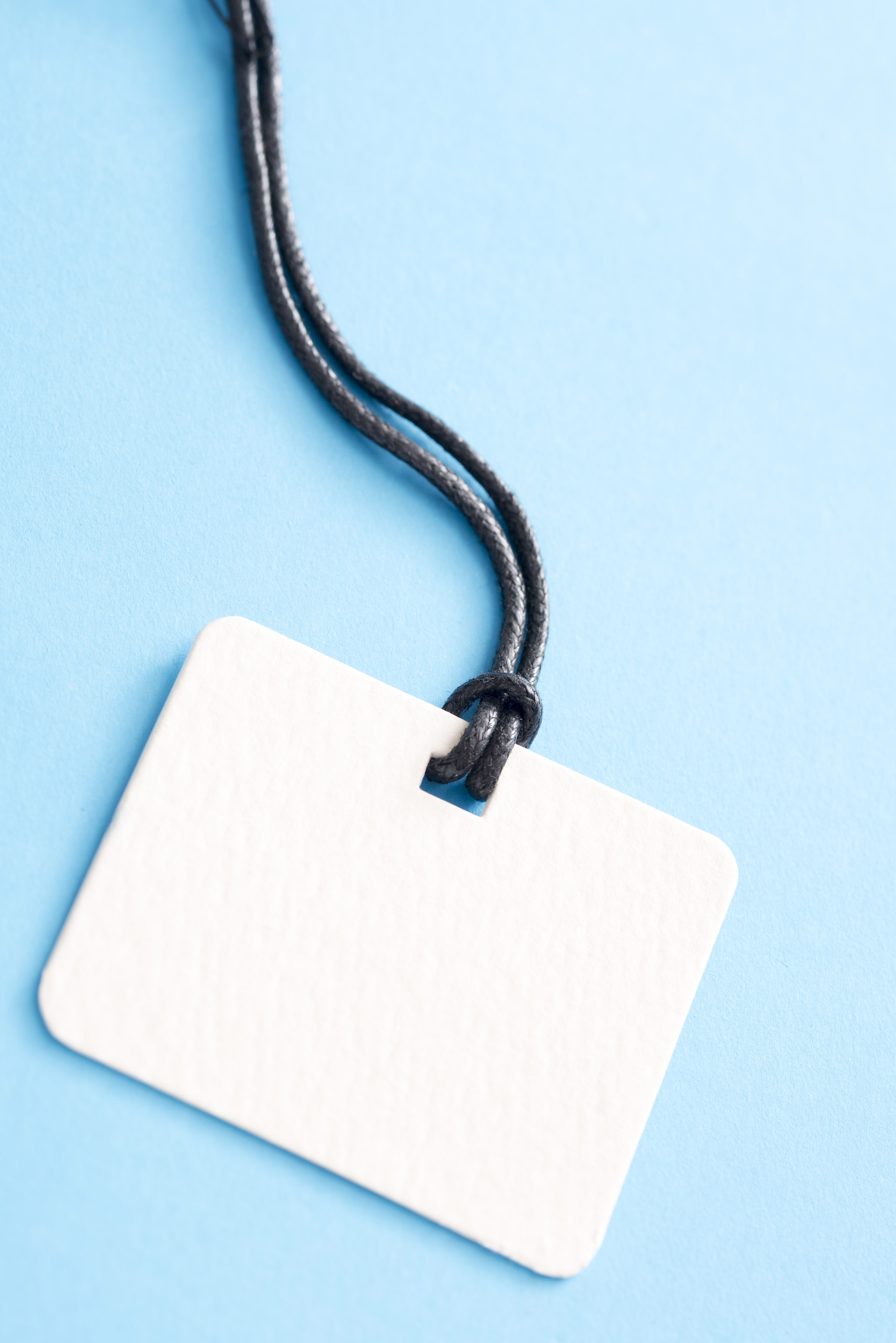 blank gift label price tag white copy space shopping cord string name communication card isolated above blue
