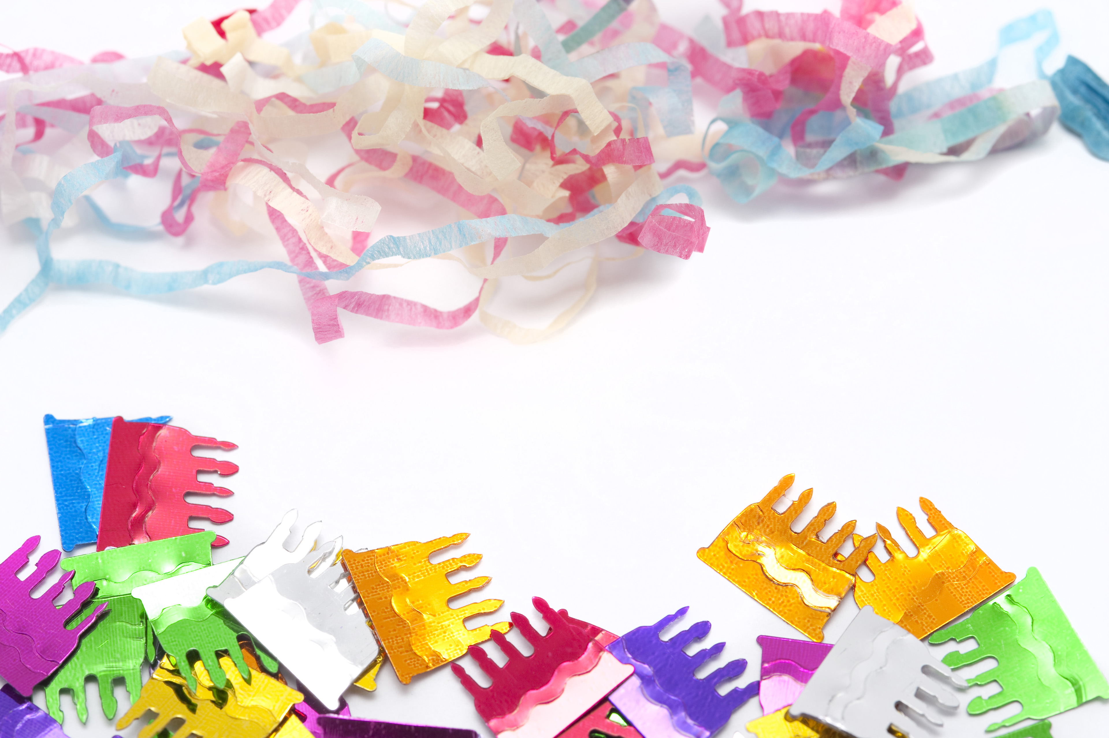 birthday border carnival celebration confetti copyspace decoration event festive holiday on white paper streamers card invitation