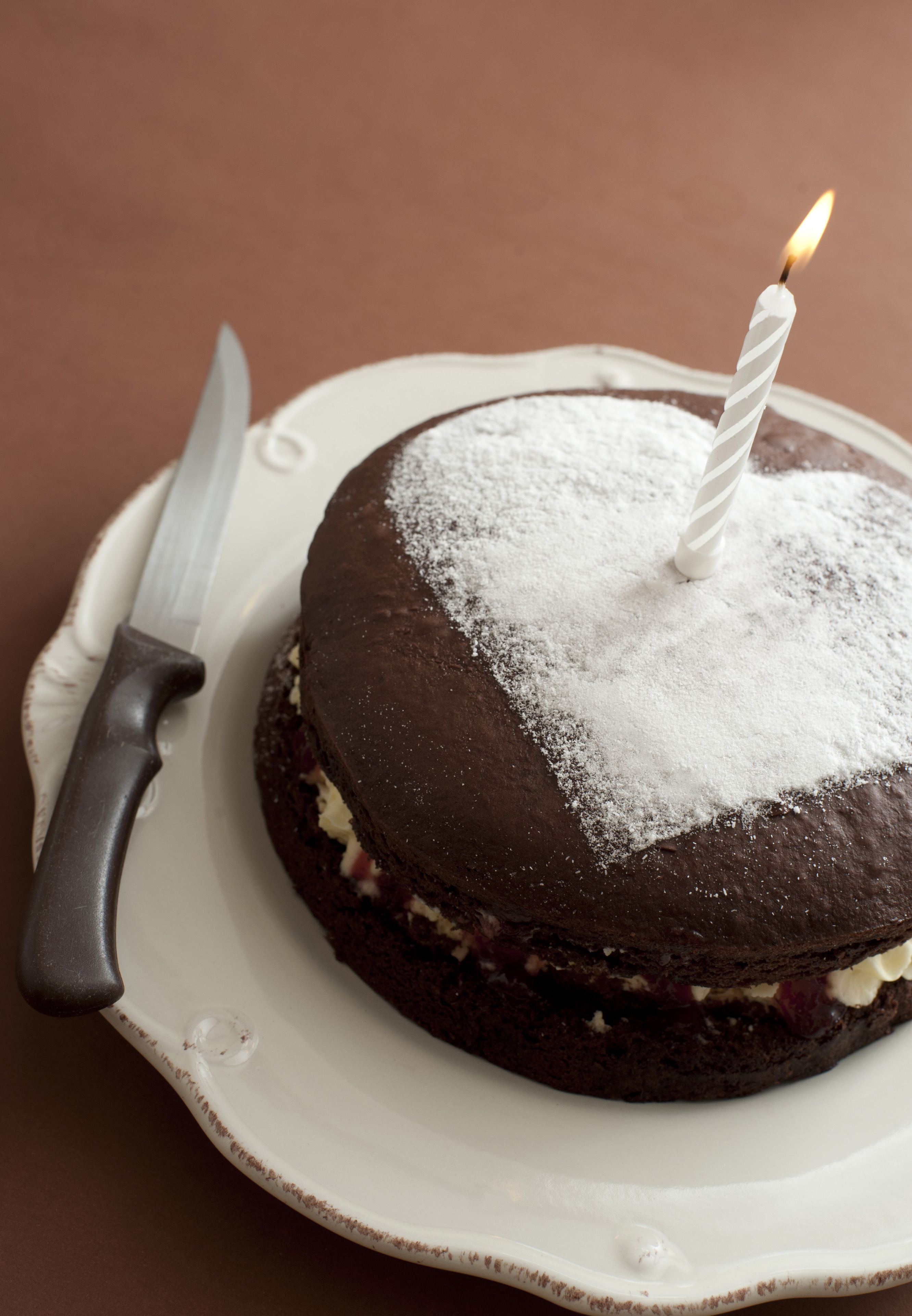 anniversary baking burning cake candle celebration chocolate first food fresh heart love romance icing sugar plate